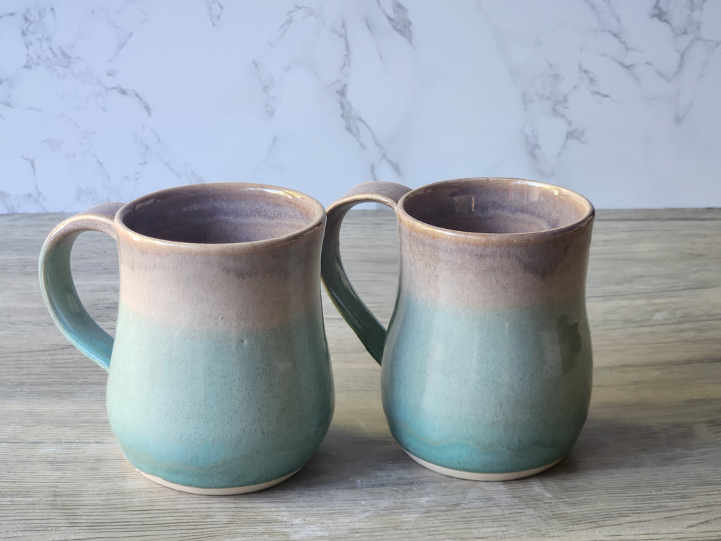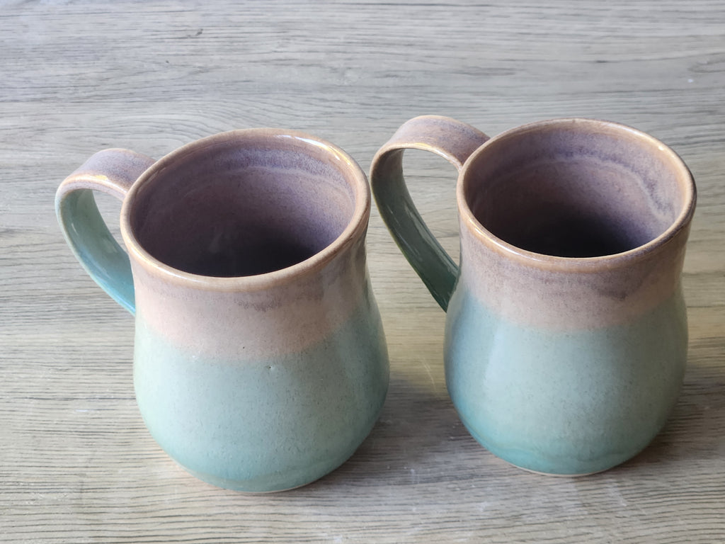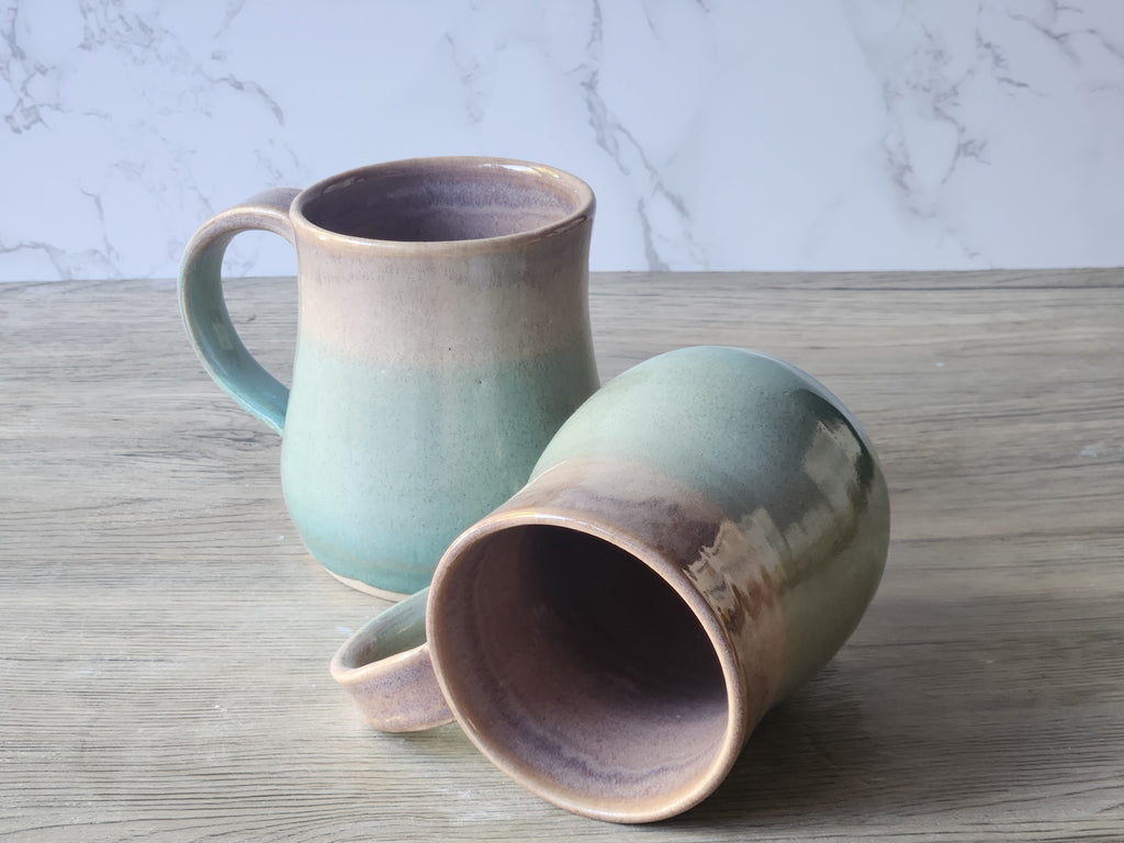 Handmade Ceramic Mug – Oatmeal & Green Glaze – 350–400ml Stoneware Cup