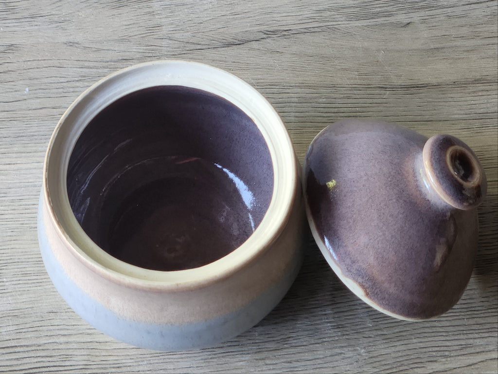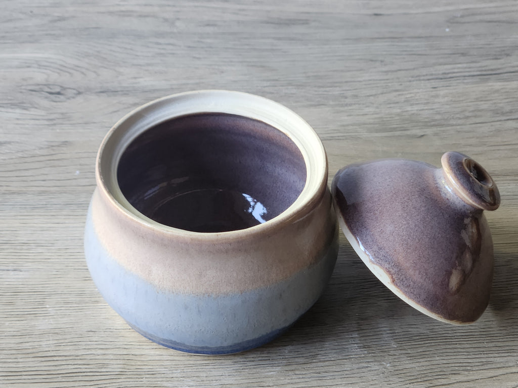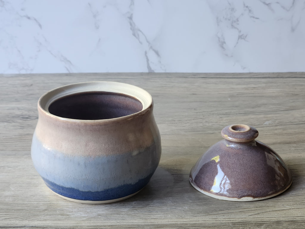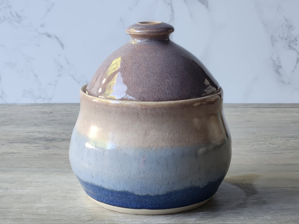 Handmade Ceramic Sugar Bowl – Mottled Green & Blue Glaze with White Interior – Wheel-Thrown Stoneware