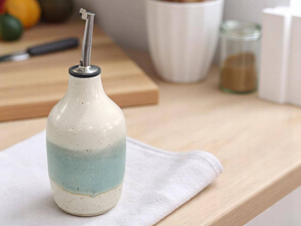 Handmade Pottery Oil Bottle – 400ml Ceramic Olive Oil Dispenser, Kitchen Gift