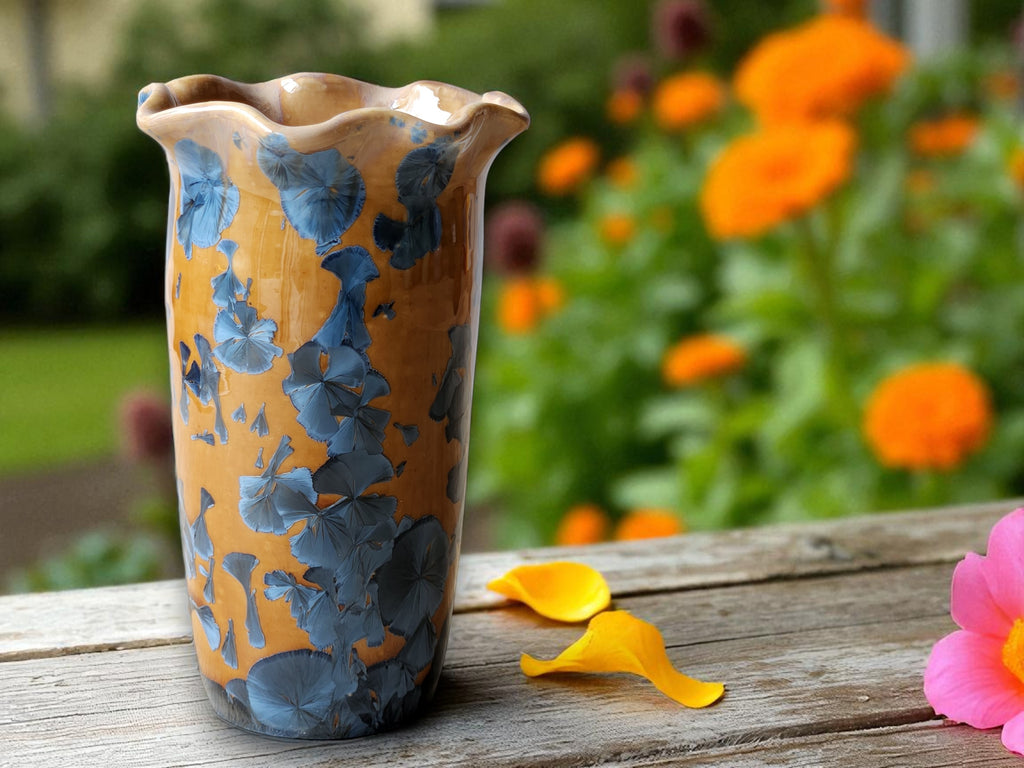 Crystalline pottery represents the cutting edge of ceramic art — each firing is unique, with crystals forming unpredictably, ensuring no two vases are ever the same.