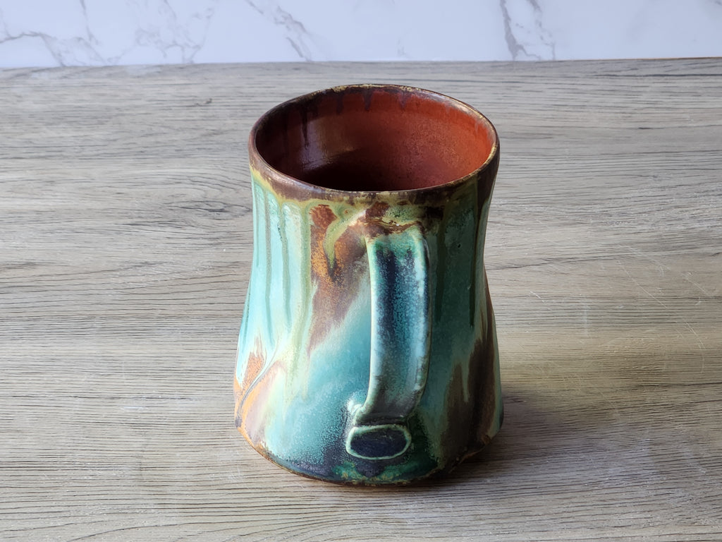 Rustic Ceramic Mug – 400ml – Handmade mug with Layered Red-Brown & Blue Glaze with Glossy Interior