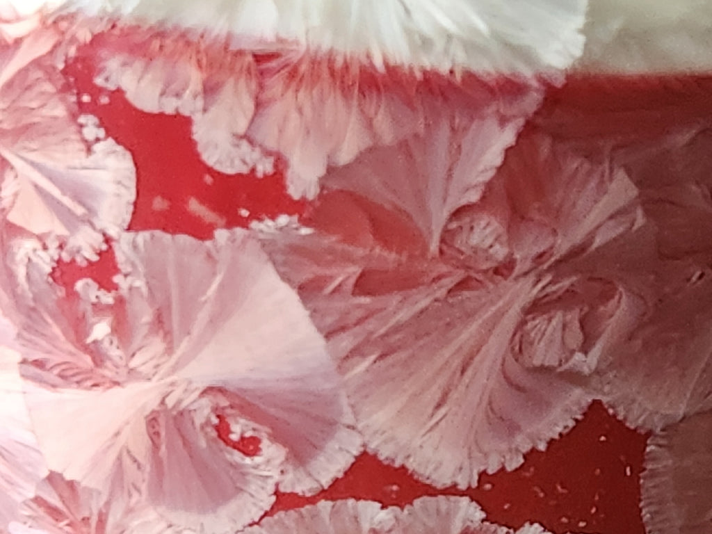Red crystalline glaze with natural white crystal formations