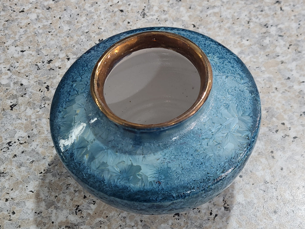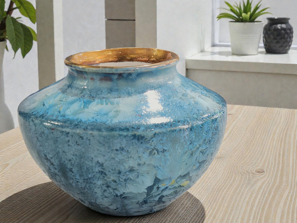Crystalline glazing is a rare and highly skilled pottery technique that blends artistry with science. Each crystal forms naturally during the cooling phase of the firing process, creating intricate patterns that can never be repeated. The result is a piece with true one-of-a-kind beauty.