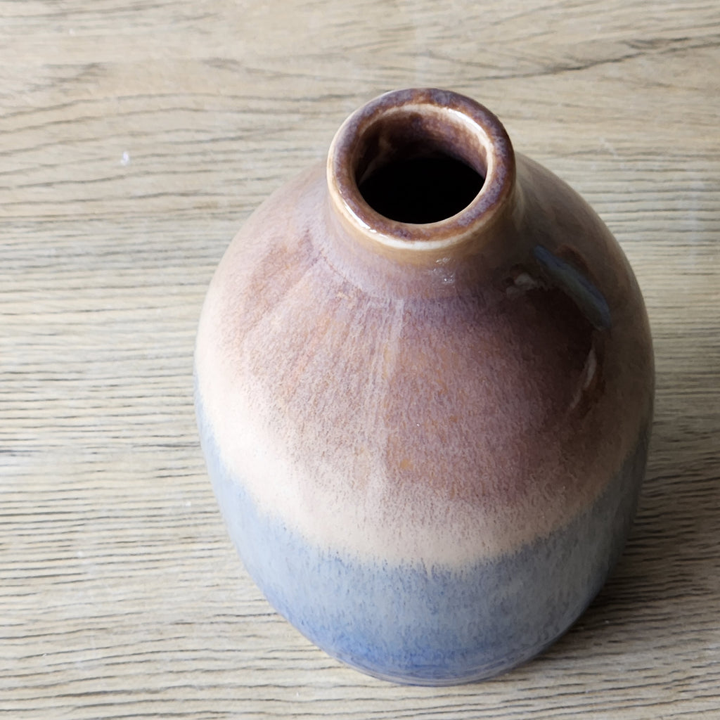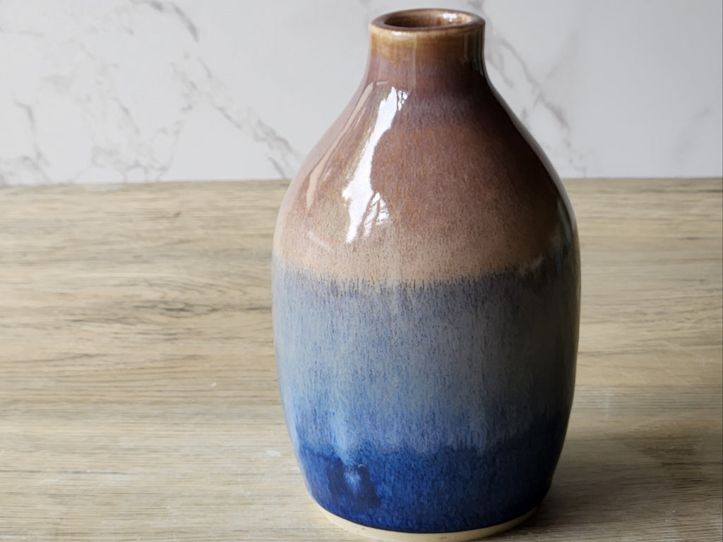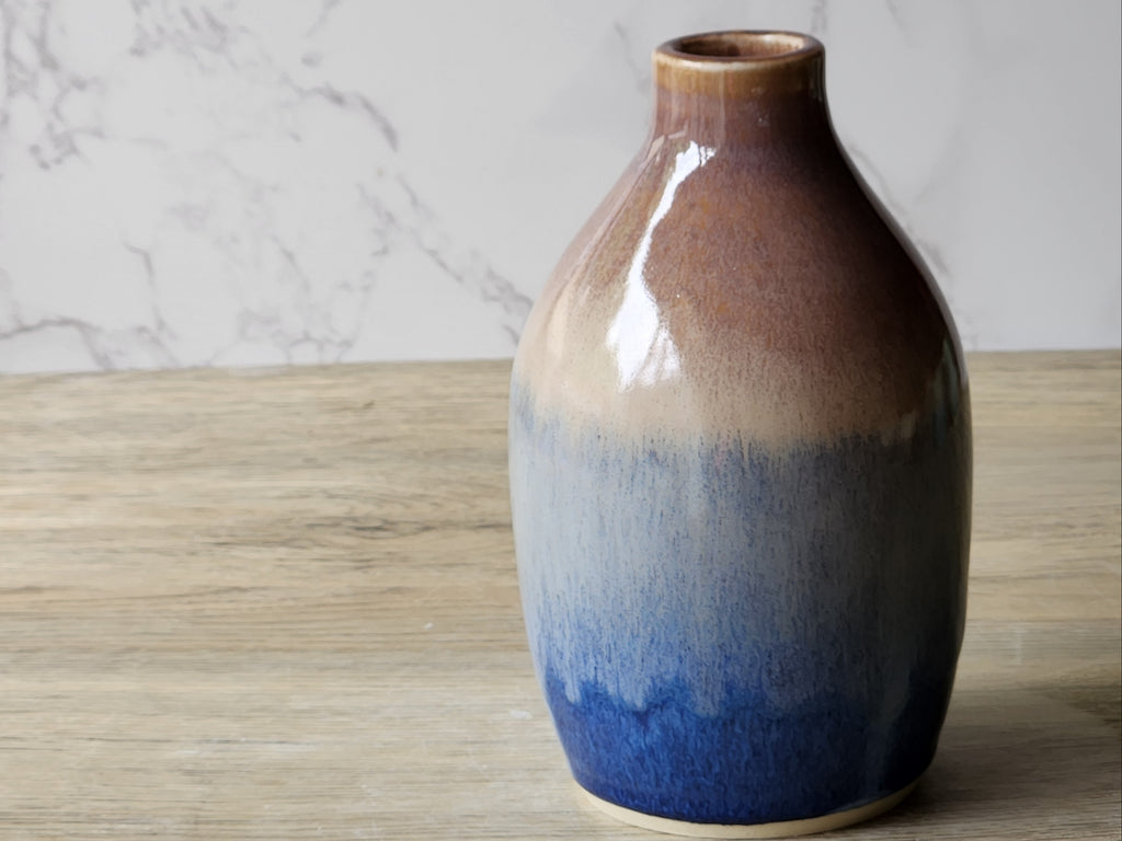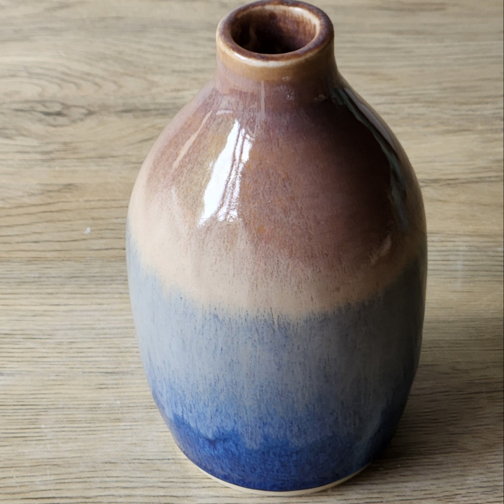 Handmade Ceramic Bud Vase – Oatmeal & Deep Blue Glaze | 14cm | Melbourne Pottery | Unique Gift