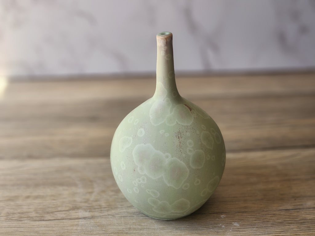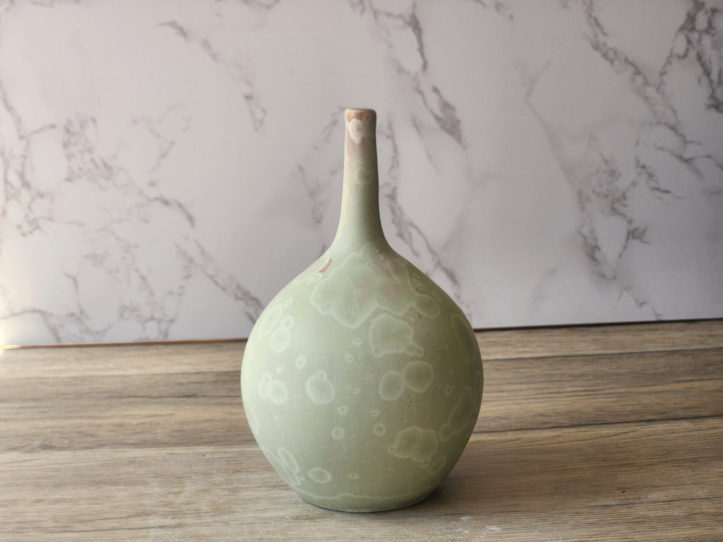 Crafted with care in our Australian pottery studio, this crystalline bud vase is designed to highlight the beauty of nature with its soft, agate-inspired finish.