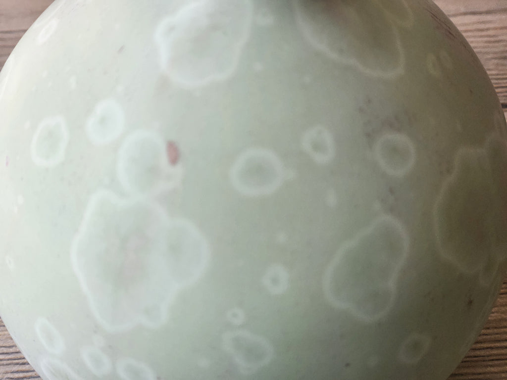 Crystalline pottery is technically and aesthetically on the cutting edge of ceramic art. It displays the combination of intense organic beauty mixed with the scientific process. Making these requires a high level of craftsmanship to make the porcelain pieces by hand and then the scientific no how to master the chemistry of crystalline glazes. The crystals grow in the firing process and are highly variable.